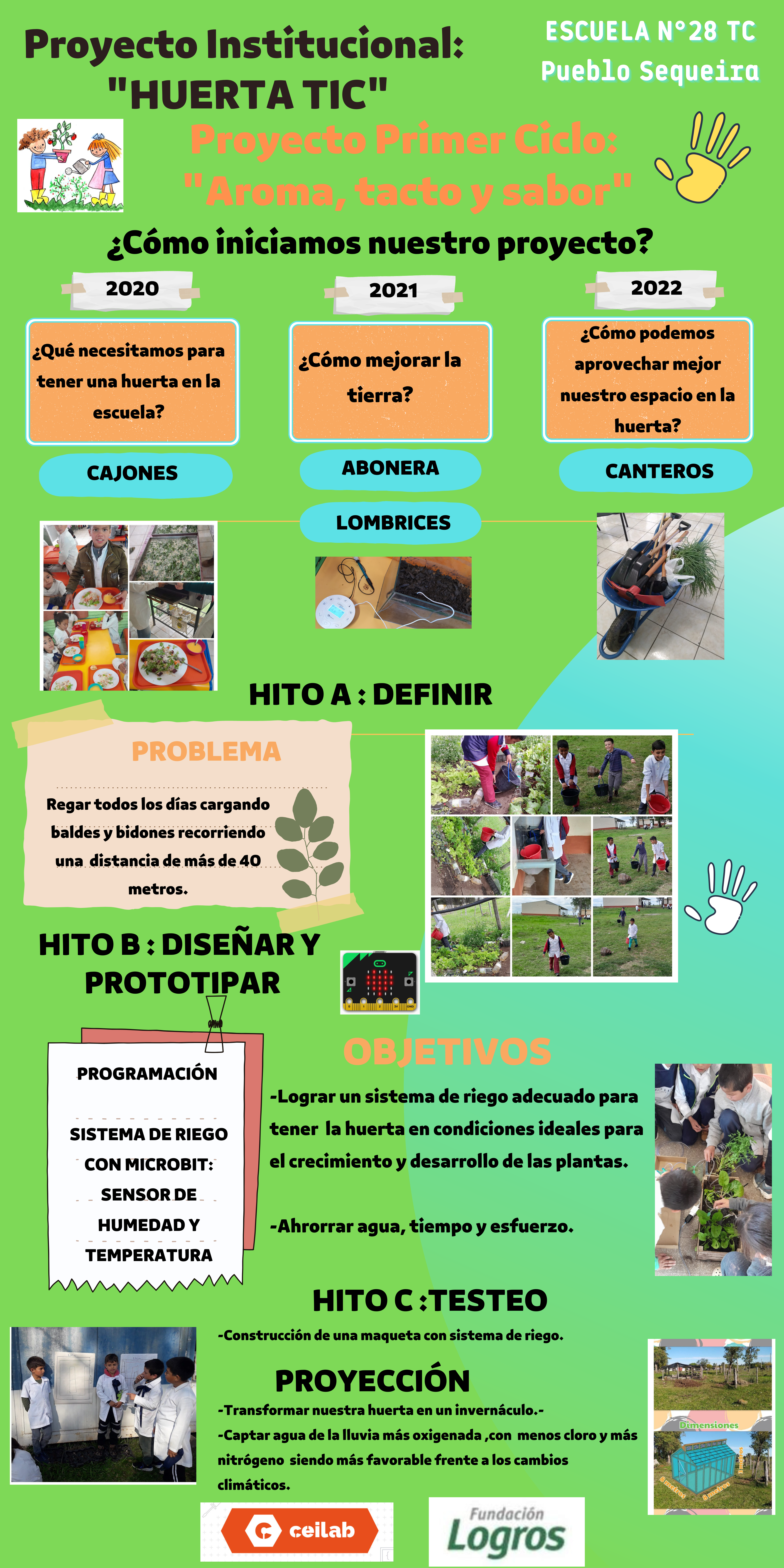 En la escuela N° 28 de Sequeira detectaron dos problemas a resolver. Por un lado, y considerando la proximidad de la escuela a la ruta, se propusieron diseñar una solución que permita cruzar la ruta de forma más segura. Para ello se diseñaron distintos tipos de puentes peatonales con materiales como cartón y madera.