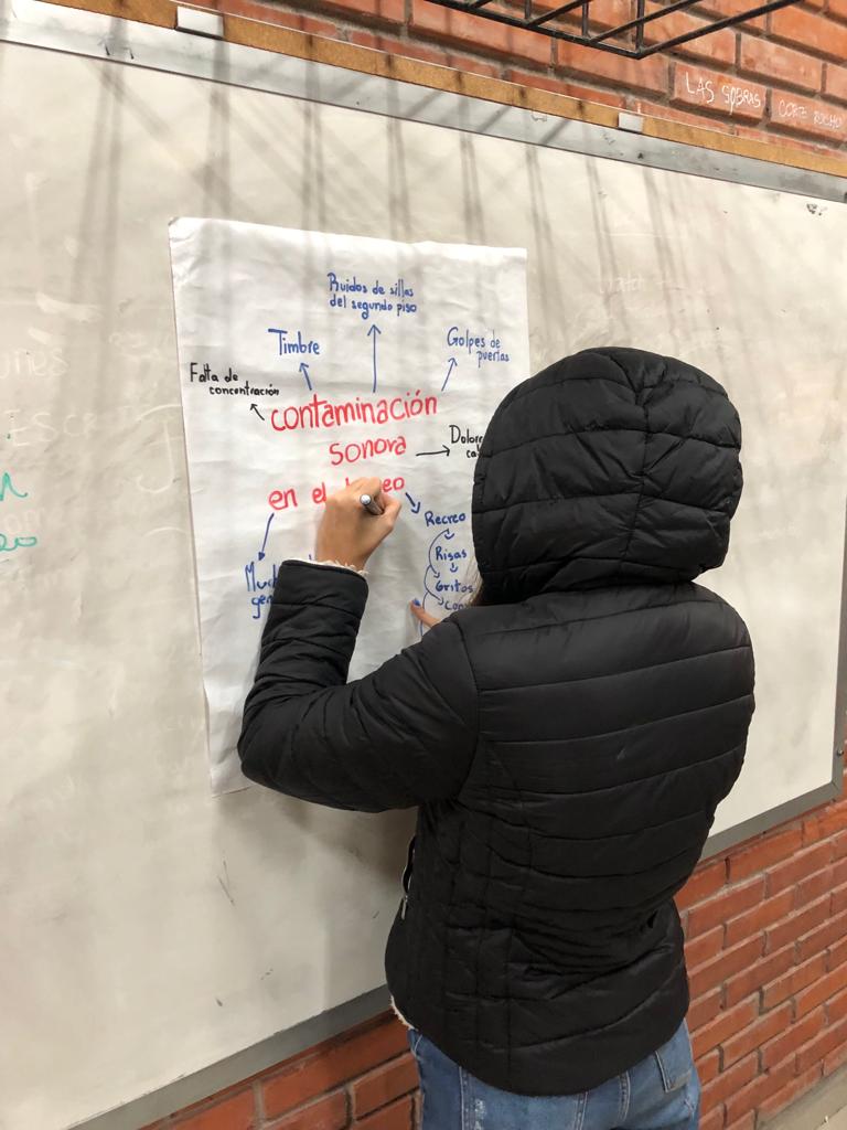 Se trabajó con base en la contaminación sonora, ya que profesores de Educación Sonora y fonoaudiólogos (padres de estudiantes) han planteado el problema de la acústica en el edificio.