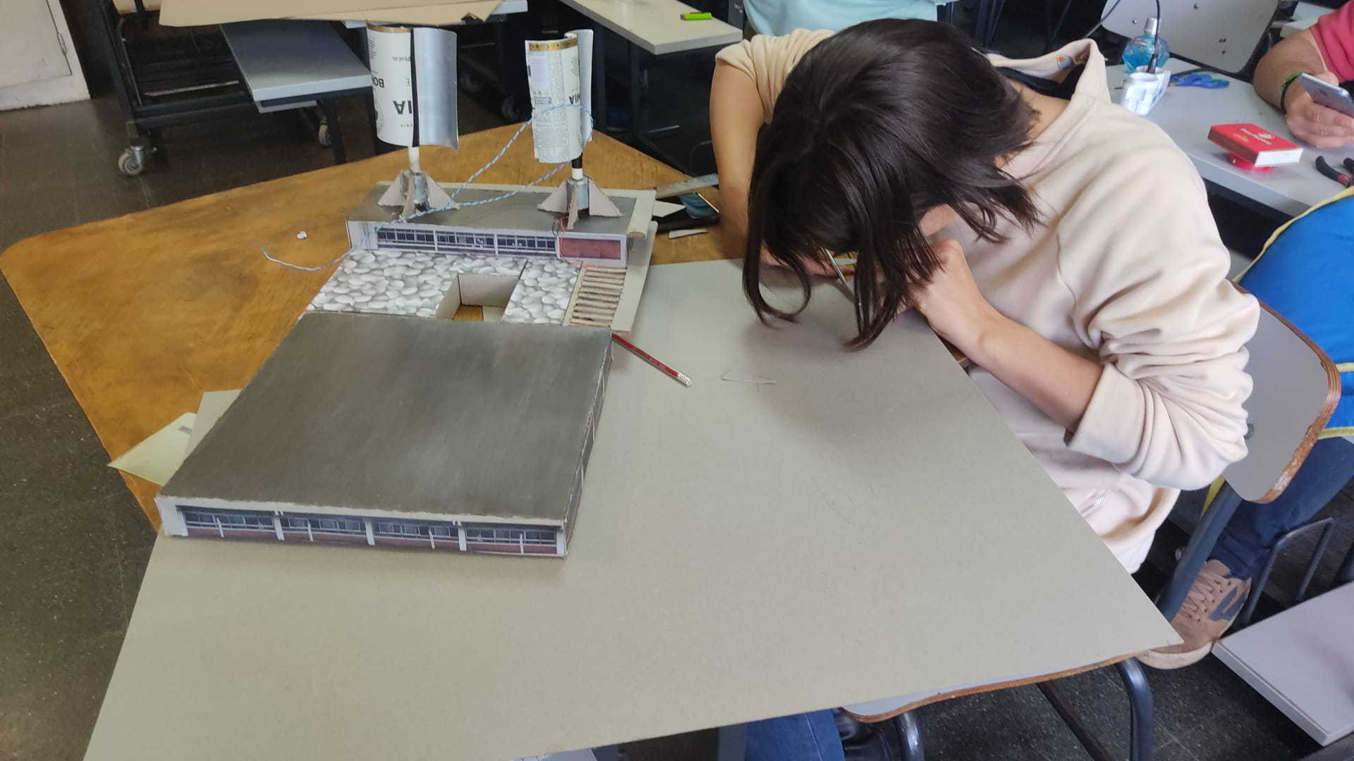 Estudiantes de 1º y 2º de ciclo básico trabajaron con una problemática que tiene la comunidad a su alrededor. Combinaron tecnologías para resolver la falta de luminosidad en la ruta que atraviesa el departamento y sobre todo en su centro educativo. La solución planteada implica implementar aerogeneradores verticales y paneles solares para mantener una producción constante de electricidad en su centro educativo. El proyecto abarca tanto la construcción de maquetas como la programación.